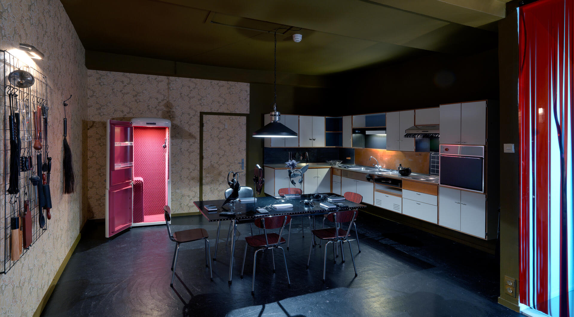 In the exhibition Yes, Please! visitors were invited to embark on a journey through an array of imaginative and sensual spaces. With a menu offering 333 erotic stories across 66 unique categories, visitors are guided through rooms that explore different aspects of desire. They navigate various rooms designed to tickle the senses and imagination, from being gently massaged by a curving carpet to exploring the kinky kitchen, all while engaging different senses.In Marres eight rooms were transformed into sensuous installations where visitors were invited to explore, play, touch, read and fully immerse themselves into other people’s fantasies and that of their own.